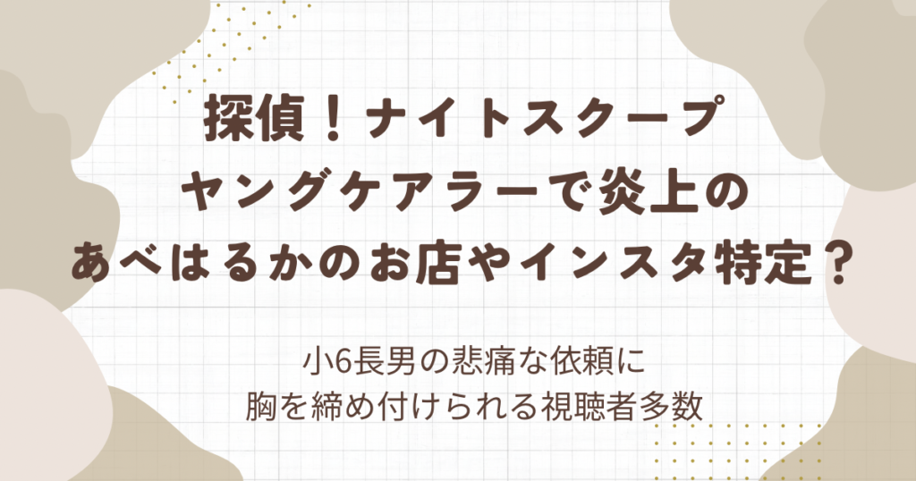ナイトスクープ:ヤングケアラー母あべはるかの店やインスタ特定!?